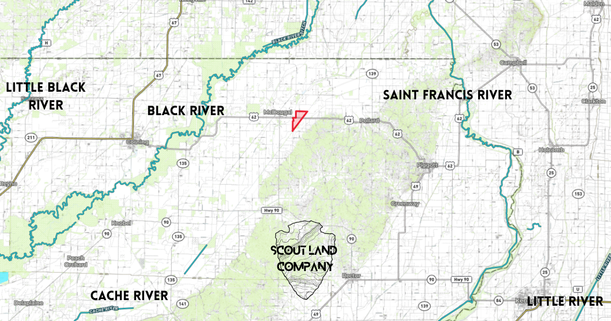 The tract is located in Pollard, AR in Clay County. It lies between the Cache, Saint Francis, and Black Rivers.